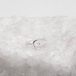 Descrição: Anel lua e estrela detalhe zircônia regulável G fabricado(a) em prata