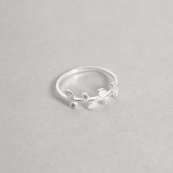 Descrição: Anel folhas e zircônias fabricado(a) em prata