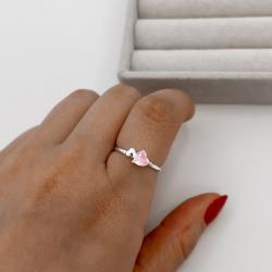 Descrição: Anel zircônia coração rosa e coração fabricado(a) em prata