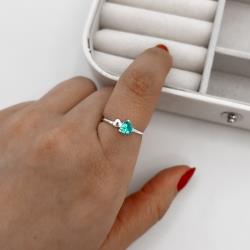 Descrição: Anel zircônia coração acqua e coração fabricado(a) em prata