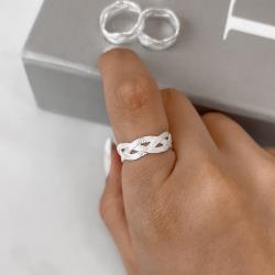 Descrição: Anel largo trançado desenhado fabricado(a) em prata