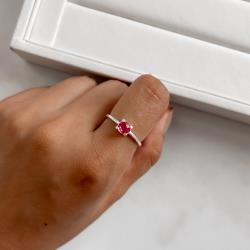 Descrição: Anel solitário zircônia facetada rosa 5mm fabricado(a) em prata