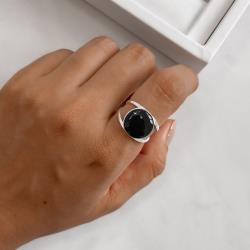 Descrição: Anel largo dois fios círculo resina fabricado(a) em prata