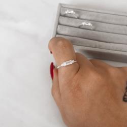Anel zircônia retangular cristal com mini zircônias | Mya Prata