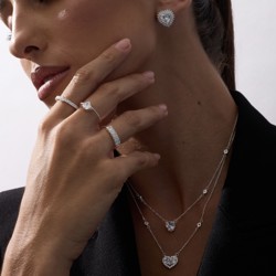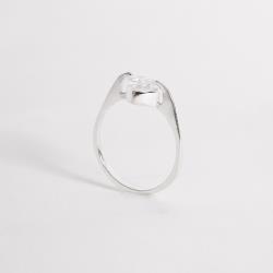 Descrição: Anel solitário 2 garras zircônia coração fabricado(a) em prata