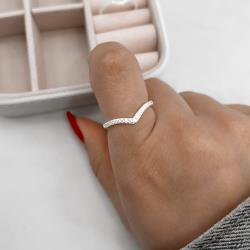 Anel V cravejado cristal | Mya Prata