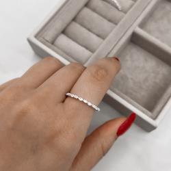 Descrição: Anel zircônias redonda e navete fabricado(a) em prata