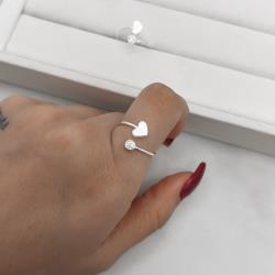 Anel coração cheio e zircônia regulável P