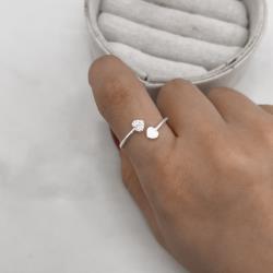 Anel fino corações liso e cravejado regulável G | Mya Prata