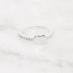 Descrição: Anel coração escrito fé com cravejado fabricado(a) em prata