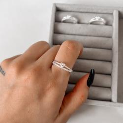 Descrição: Anel fio duplo meia aliança e nó fabricado(a) em prata