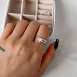 Anel fio duplo aliança e coração com bolinhas | Mya Prata