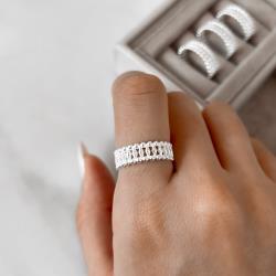 Anel largo fio bolinhas trabalhado | Mya Prata