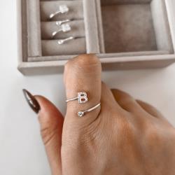 Anel letra B cravejada e zircônia regulável P | Mya Prata