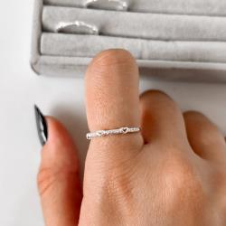 Descrição: Anel meia aliança com mini corações vazados fabricado(a) em prata