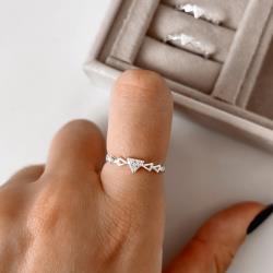 Anel triângulo cravejado com triângulos vazados | Mya Prata