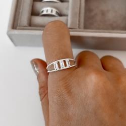 Anel 2 fios trabalhados com zircônias retangulares | Mya Prata
