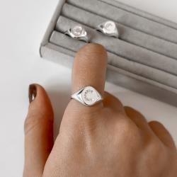 Anel oval letra C cravejada regulável P | Mya Prata