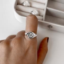 Anel oval letra D cravejada regulável G | Mya Prata