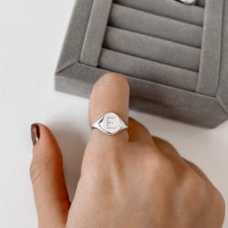 Anel oval letra E cravejada regulável P | Mya Prata
