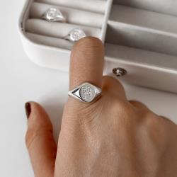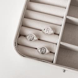 Anel oval letra R cravejada regulável G | Mya Prata