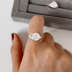 Anel oval letra S cravejada regulável P | Mya Prata