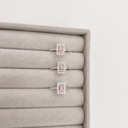 Anel zircônia retangular rosa com cravejado | Mya Prata