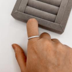 Anel meia aliança com cravejado duplo | Mya Prata