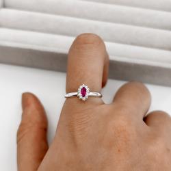 Anel solitário zircônia navete rubi com cravejado | Mya Prata