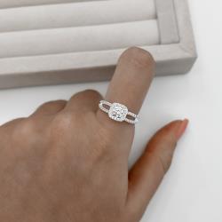 Anel zircônia redonda com fio duplo cravejado | Mya Prata