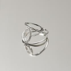 Anel largo 2 fios navete vazado cravejado | Mya Prata