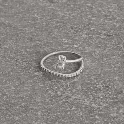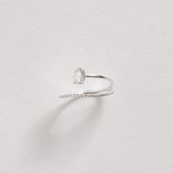 Anel ondulado meia aliança com zircônia oval | Mya Prata