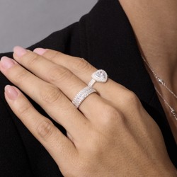 Descrição: Anel zircônia coração todo cravejado fabricado(a) em prata