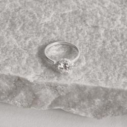 Anel zircônia redonda 6mm com cravejado | Mya Prata