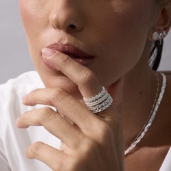Descrição: Anel aliança toda cravejada trabalhada fabricado(a) em prata