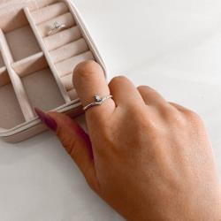 Anel V com zircônia navete envelhecido | Mya Prata