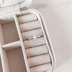 Anel solitário zircônia retangular detalhe bolinhas | Mya Prata
