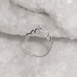 Anel solitário detalhe corações vazados