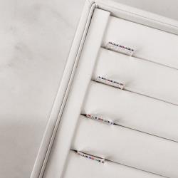 Anel reto cravejado colorido detalhe corações | Mya Prata