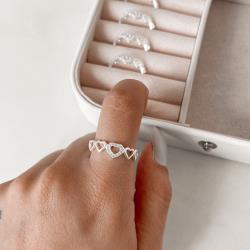 Anel corações vazados detalhe cravejado | Mya Prata
