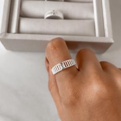 Anel largo riscado com detalhe zircônia | Mya Prata