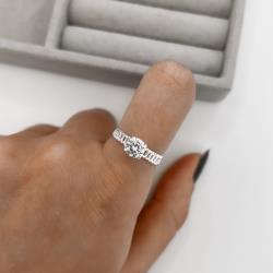Anel solitário zircônia cristal detalhe vazado | Mya Prata