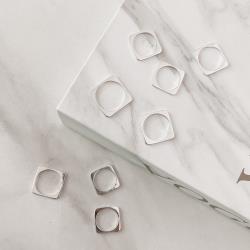 Descrição: Anel quadrado arredondado fabricado(a) em prata