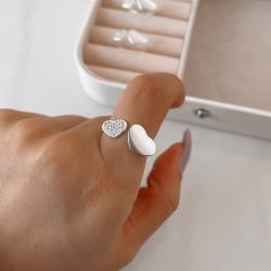 Descrição: Anel aberto coração liso e cravejado fabricado(a) em prata