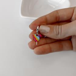Berloque pingente pirulito Mickey resina 16mm elo cravejado envelhecido | Mya Prata