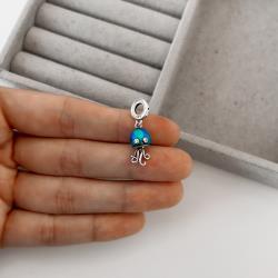 Berloque pingente água viva resina 17mm elo cravejado envelhecido | Mya Prata