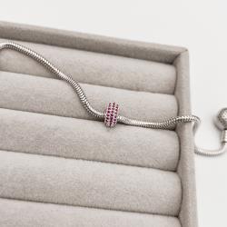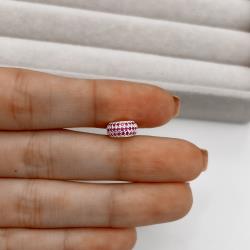 Berloque separador triplo cravejado rosa 10mm | Mya Prata
