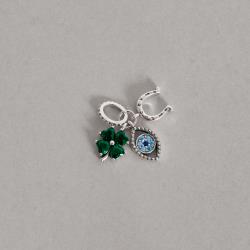 Berloque pingentes olho, trevo e ferradura com cravejado azul e verde envelhecido | Mya Prata