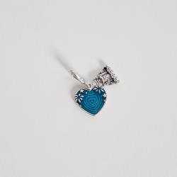 Descrição: Berloque pingentes castelo com cravejado e coração resina envelhecido fabricado(a) em prata