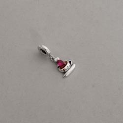 Berloque pingente xícara com zircônia coração pink 13mm envelhecido | Mya Prata